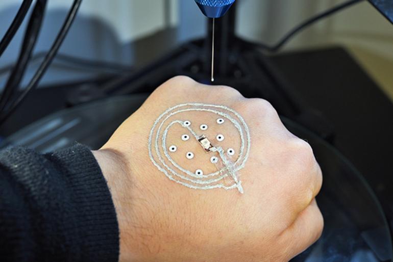 A team of scientists from the University of Minnesota utilized a custom 3D printer to print electronics on human hands, which researchers believe could be utilized by soldiers as temporary electronic sensors capable of snuffing out chemical or biological agents.